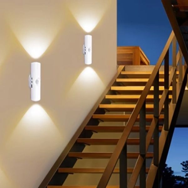 Motion sensor lighting - ideal for stairs, hallways, bathrooms, kitchens, dining rooms, bedrooms, closets, cabinets, workshops, basements, garages, storages, offices, vehicles, campers, commercial stores, factories etc. Each motion sensor lighting unit has 2-LED cat eye wall lights with Tri-Color ambient lighting for your selected tone. This Smart Human Sensor Hill Lamp has a spotlight motion sensor light that comes on when you walk up to it. It senses your movement and comes to life while you are in motion. It is a magnetic charging, self-adhesive lighting unit that requires no wiring and is fully rechargeable with enclosed USB.